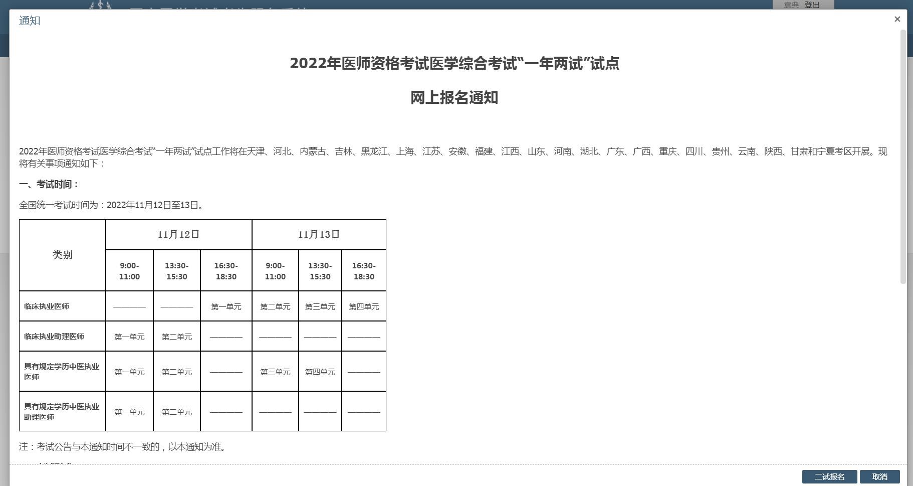 2.报考条件:在陕西考区已报考2022年医师资格考试,实践技能考试合格成绩在有效期内(含通过2021年实践技能考试考生),未通过第一次医学综合考试且无违纪违规行为的考生和第一次医学综合考试因个人原因缺考及未缴纳考试费的考生可报名参加第二次医学综合考试。